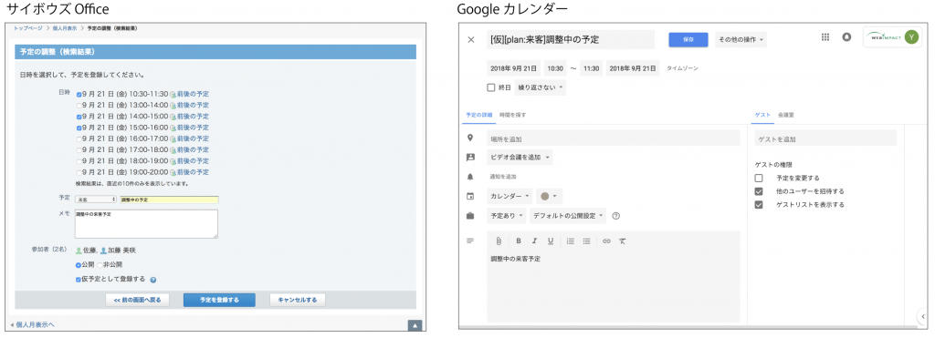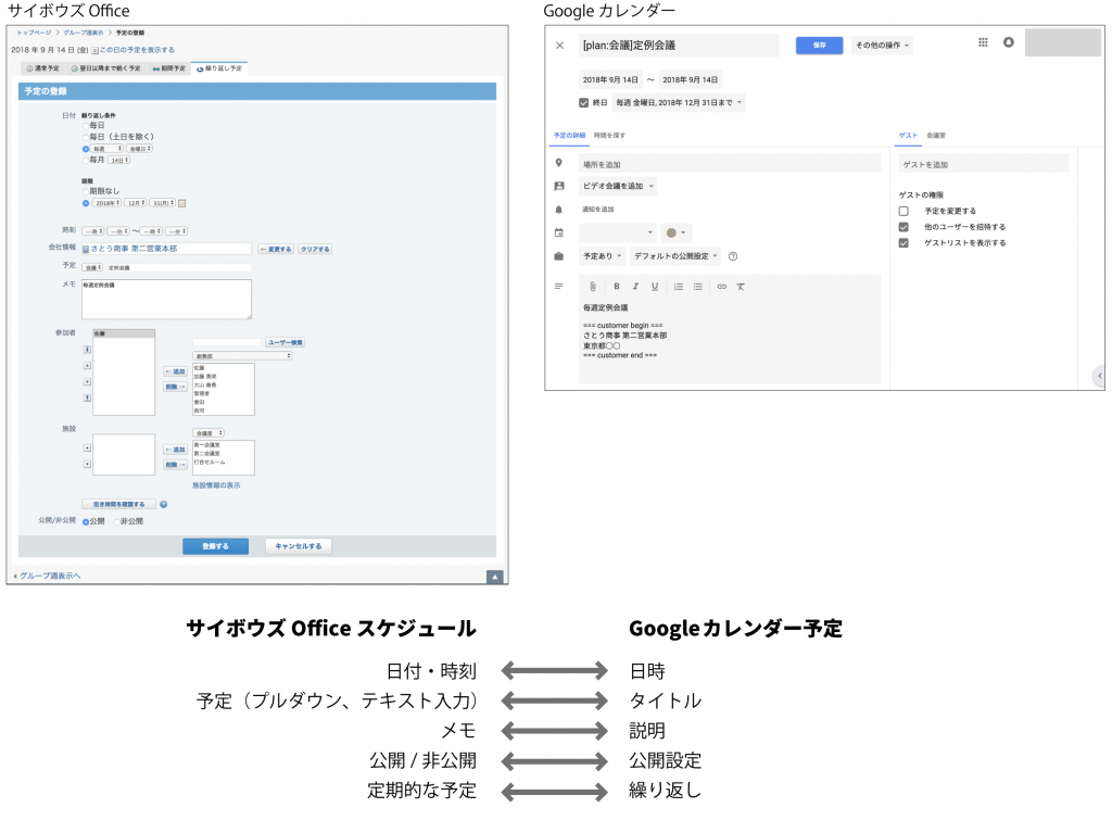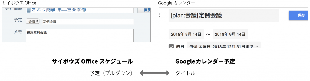 Googleカレンダーの「権限の設定」欄に変更権限が設定されている場合は、サイボウズ Officeで登録・変更されたスケジュールをGoogleカレンダーへ反映させることができるようになります。
