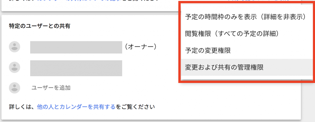 Googleカレンダーを共有している際の権限に関しては、以下の方法でご確認ください。