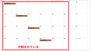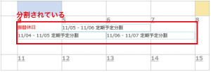 分割された予定の変更を行った場合、変更を行った予定のみ内容が更新され、その他の関連する予定については内容が反映されません。