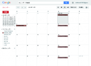 例) desknet’s NEOで00:00 ~ 23:50の予定を 11 月 1 日 ~ 11 月 30 日までの期間に 1週間毎に繰り返し登録して同期した場合Googleカレンダー側で 11月4 日(終日)の予定を登録して同期した場合